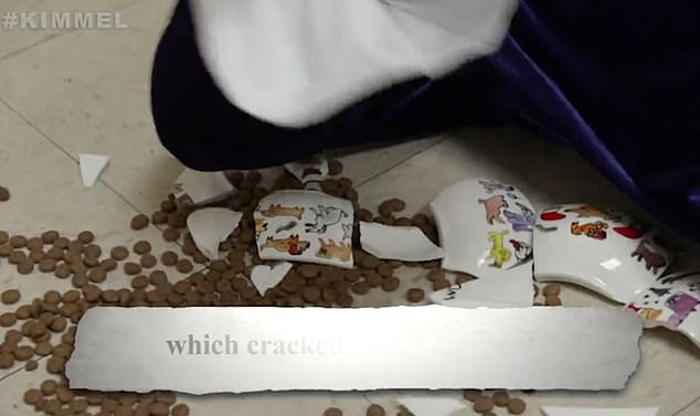 The skit continues with William twirling a necklace around, resulting in the dog bowl shattering into pieces.