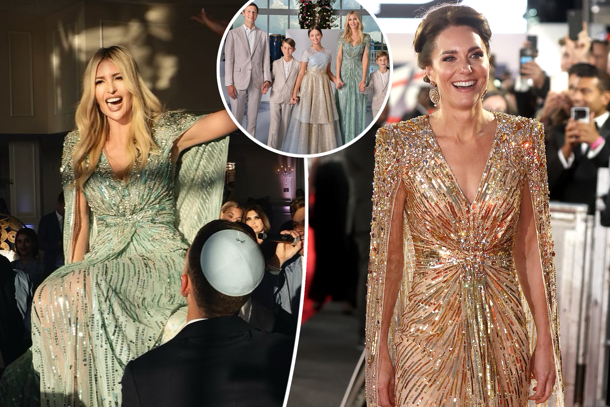 The former first daughter opted for a turquoise version of the glittering gold Jenny Packham dress, which the Duchess of Cambridge had donned for a movie premiere in 2021.
