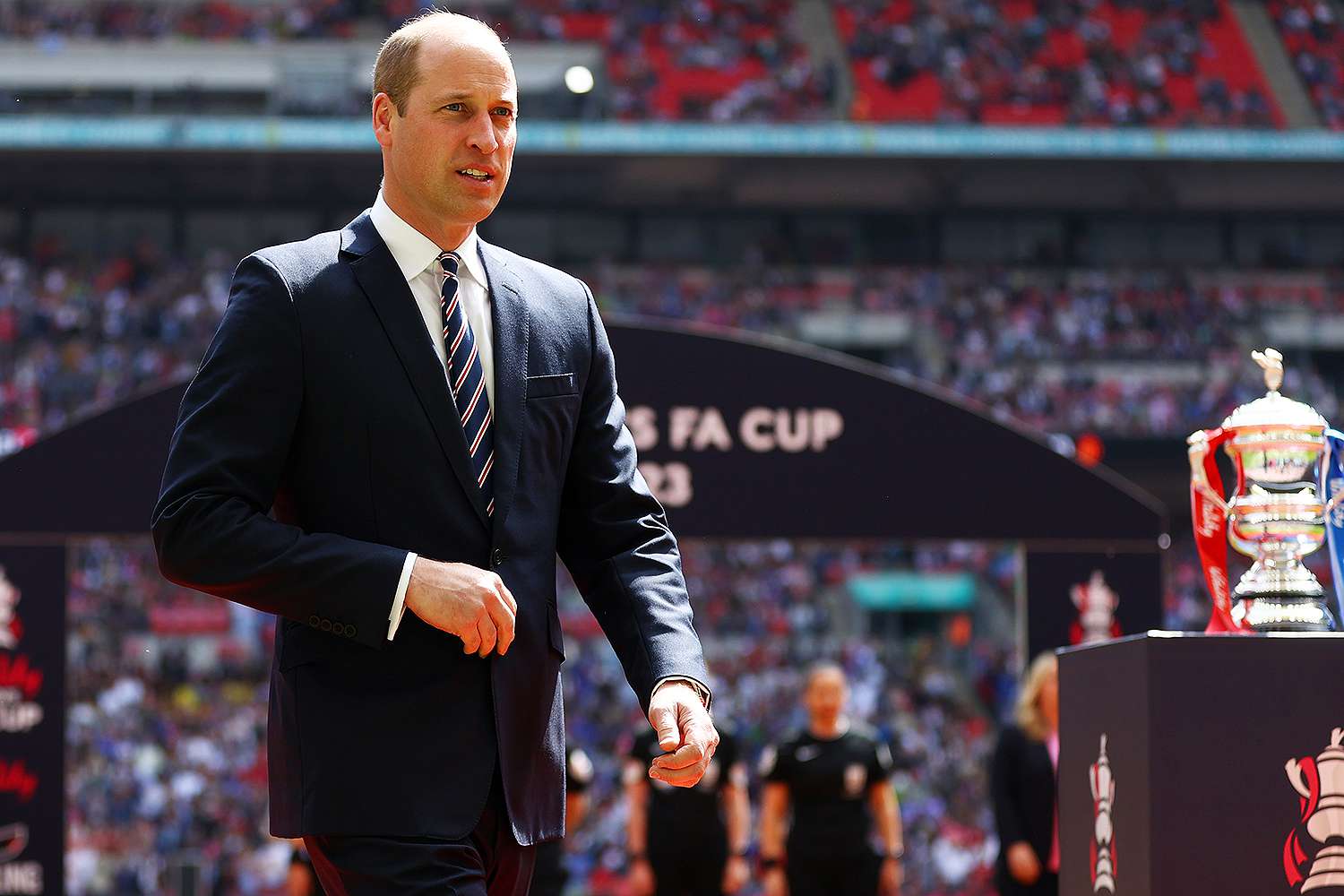 Just moments before the 3pm kick-off, Prince William, who serves as the head of the football association, greeted the players from both teams before taking his seat in the royal box alongside his son.