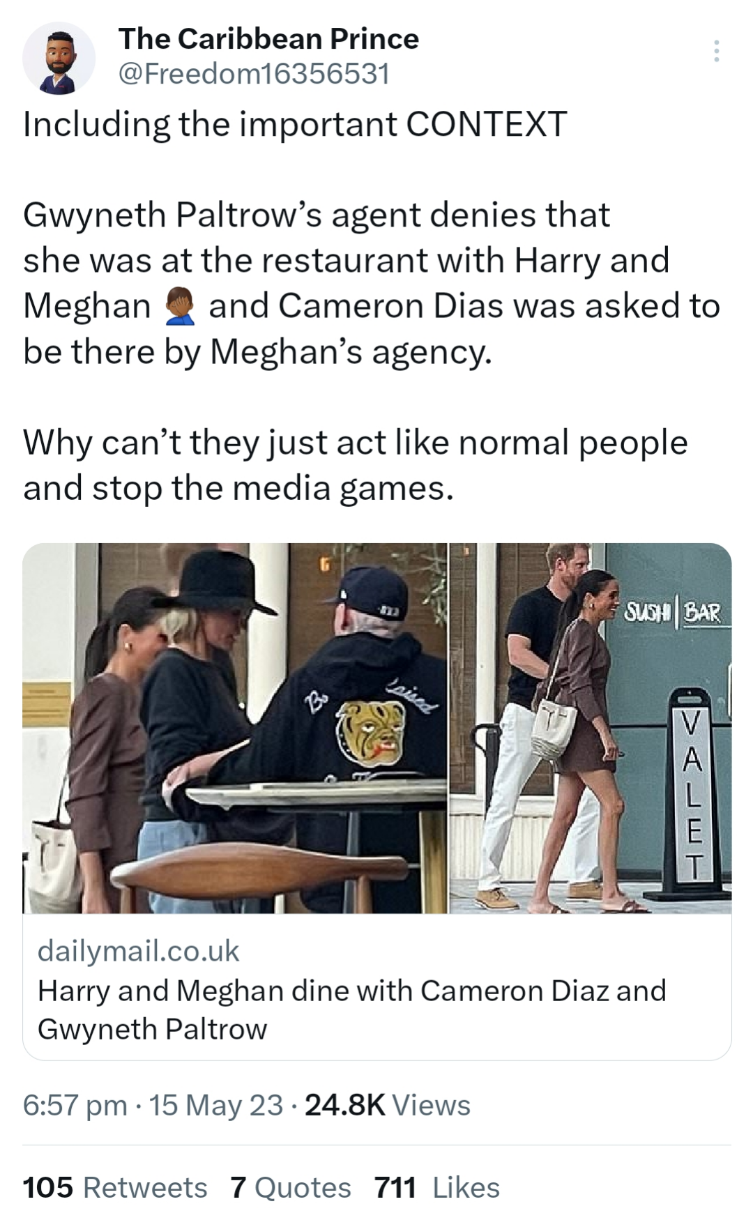 Gwyneth Paltrow Denies Dining Out with Sussexes at Sushi Restaurant, Claims Meghan’s Agency Stalked Cameron Diaz
