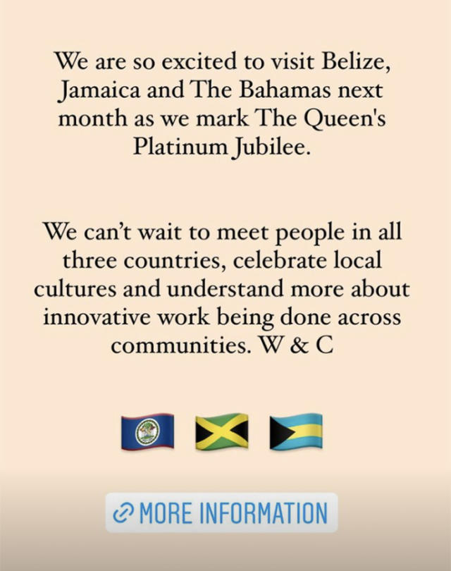 Earlier reports had hinted at their plans to travel to the Caribbean this spring, and sightings of representatives for the royal couple on Belize's Paradise Island of Ambergris Cay last month further fueled the speculation.